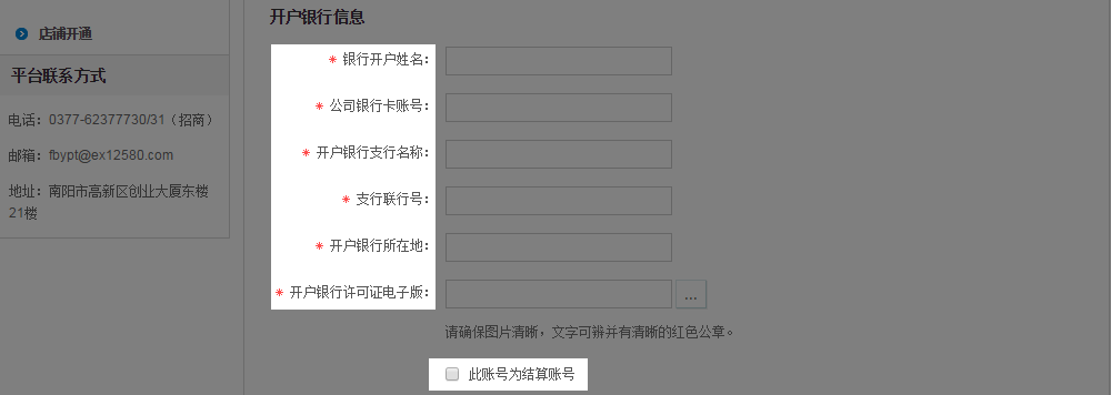 6、填寫(xiě)公司營(yíng)業(yè)執(zhí)照信息,電子版需加蓋企業(yè)公章并保證圖片清晰。