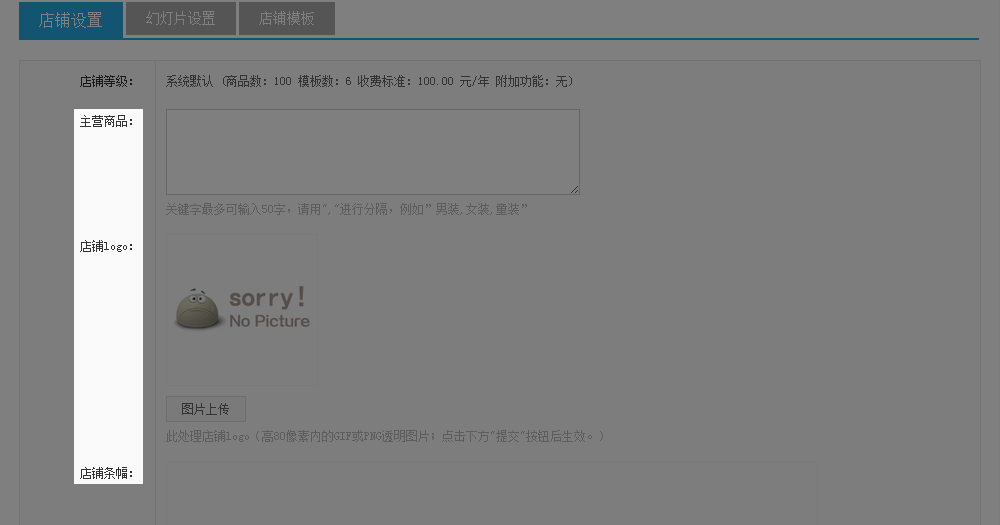 2、按照提示填寫或修改店鋪主營商品,上傳店鋪logo、店鋪條幅等基本信息。